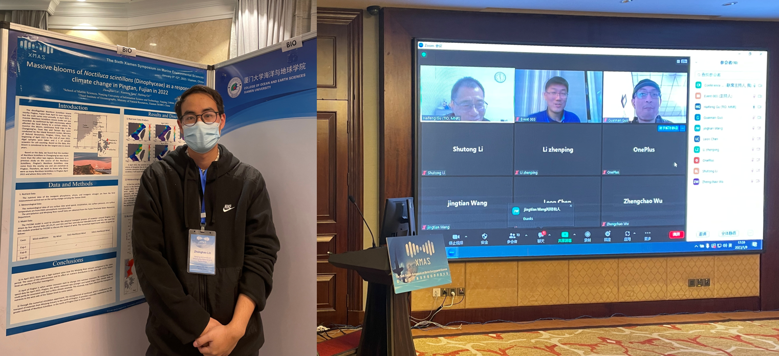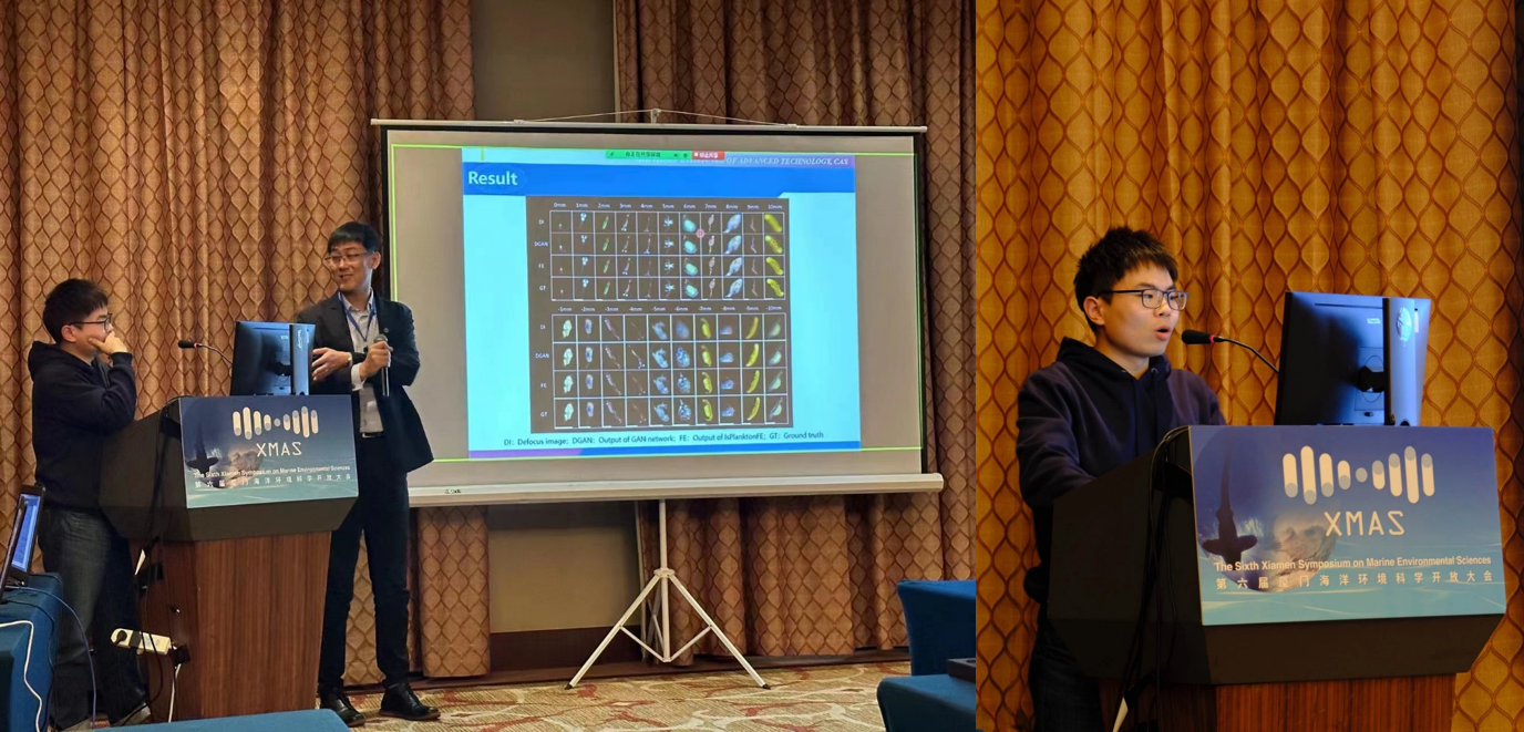 博士生陈涛就最新发表的浮游生物原位成像景深扩展技术进行报告,硕士生郭冠男、林忠豪分别以“浮游生物原位成像自动着色技术”和“2022年福建平潭地区夜光藻大量暴发对气候变化的响应”为题进行了海报展示。郭冠男荣获了本届大会十佳学生海报奖。