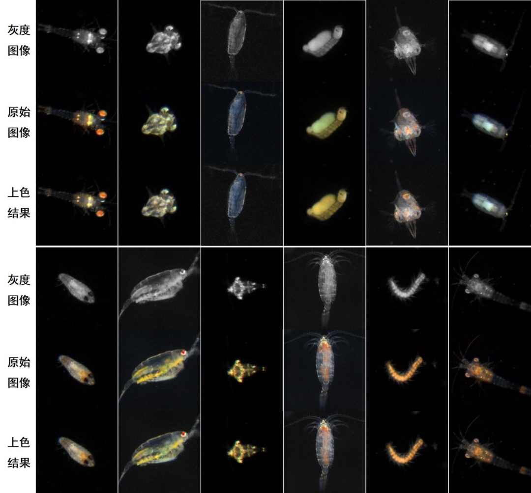海洋浮游生物目标图像着色算法效果示例
