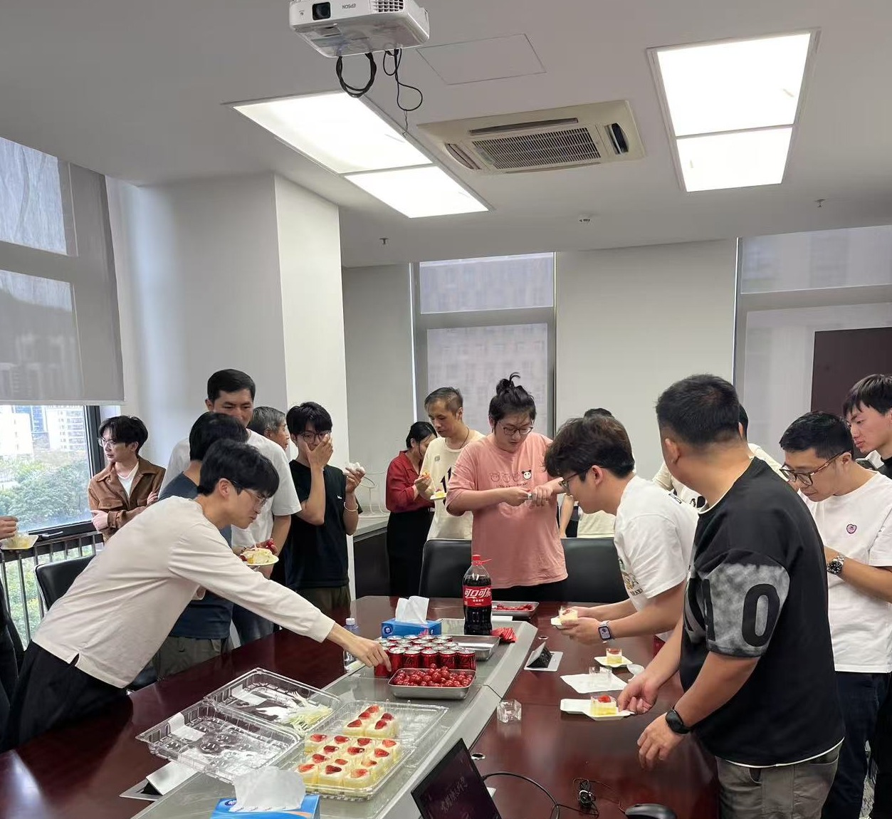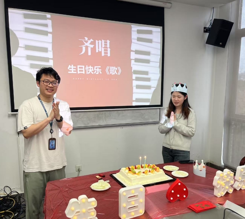 工作虽然很重要,但并不是生活的全部,光电中心非常重视员工与学生们的工作与生活的平衡,因春节假期原因,中心在2025年3月3日为3月生日的员工举行了集体生日会。下午的6楼会议室欢声笑语,大家欢聚一堂,纷纷为本月的寿星焦国华、佘荣斌、周婧、陈子塑献上美好的生日祝福。