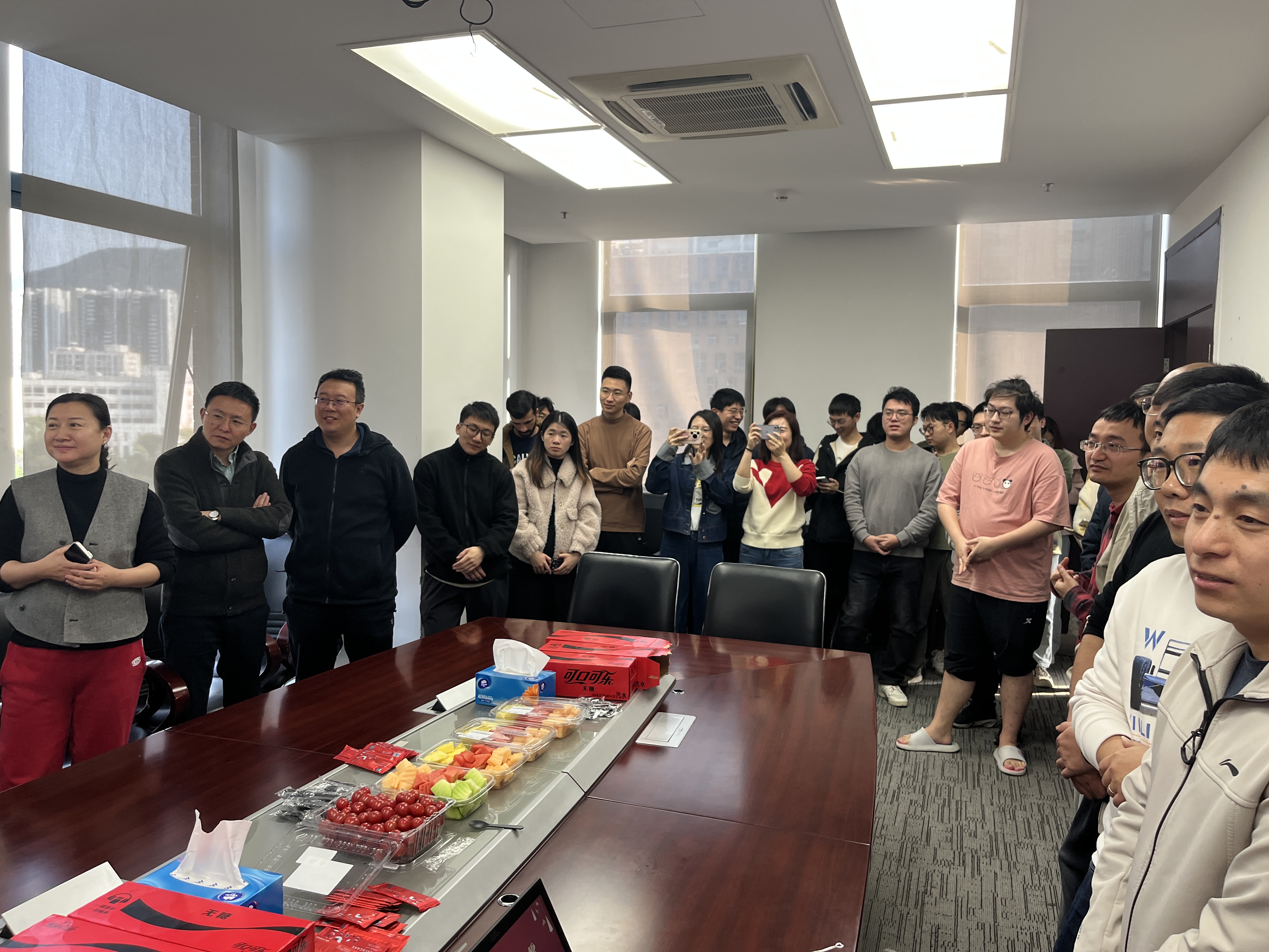 科研工作很重要,但并不是生活的全部,光电中心非常重视员工与学生们的工作与生活的平衡,中心在2025年4月1日为4月生日的员工举行了集体生日会。下午的6楼会议室欢声笑语,大家欢聚一堂,纷纷为本月的寿星崔洪亮、谈宇光、李圳萍、郑世浓和赵书翔献上美好的生日祝福。